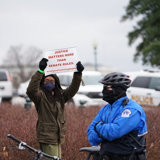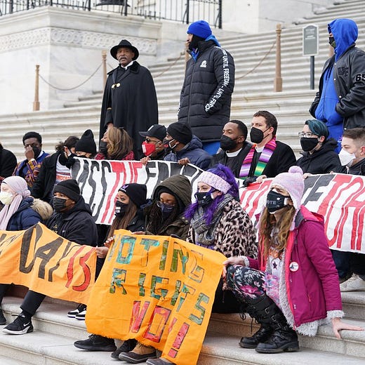 This is a tough update to write. As I’m sure you know, the vote to fix the filibuster failed on Wednesday, which means, at least for now, the Freedom to Vote John Lewis Act (FTVJLA) cannot become law. As I’ll explain below, while all fifty Democrats voted to advance the FTVJLA, without rules reform, the bill was blocked by a Republican filibuster and there’s no available work-around.